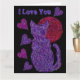 Purple Cat And The Moon Cat Lover Anniversary Card