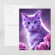 Purple cat called Lavender with roses Holiday Postcard