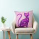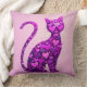 A creatively designed purple cat silhouette composed of heart shapes on a pink background, symbolizing love and affection with vibrant color accents.