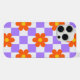 Purple Check Pattern With Orange Hippie Flower iPhone Case