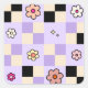 Purple Checkered Daisies Retro Flower Check Square Sticker