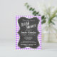 Purple Checkered Gingham; Vintage Chalkboard Invitation Postcard