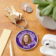 This cool customized high school cheerleader photo gift features white typography of your team and player name on a purple keychain with a cheer megaphone. Personalize with your student's photograph and class year as a proud cheerleading parent. A great gift for a mom or dad.