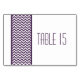 Chic and modern Chevron Border Table Number Card featuring a simple chevron pattern border in purple and white. This stylish design will set the tone for an elegant wedding. Easy to customize, simply add the appropriate table number(s) in the text field provided. Click "Customize It" to find more personalization options.