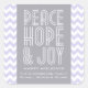 Send a contemporary greeting this holiday season. This sticker features the words "Peace, Hope & Joy" rendered in a modern typeface on a mauve colored panel against a purple chevron patterned background. Great as a gift tag or a favor. Available in alternate colors with matching products.