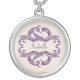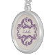 Elegant and sophisticated Chic Damask Necklace featuring a soft beige background and a stylish damask flourish embellishment in purple. This modern design is easy to customize with your own text. Click "Customize It" to find more personalization options.