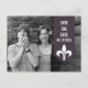 Modern and elegant Chic Flourish Banner Photo Save the Date Postcard featuring an arrow banner in eggplant purple adorned with a simple fleur de lis ornament. This classy save the date postcard is perfect for announcing your upcoming wedding. Easy to customize, simply add your own photo and wedding details. Click "Customize It" to find additional personalization options.