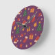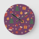 Purple Christmas Pattern Aesthetic – Cute Holiday Round Clock
