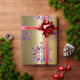 An elegant golden Christmas wrapping paper with a pattern of purple snowflakes (or stars) scattered over a gold background to add a festive and sophisticated touch to your Christmas gift wrapping this year.