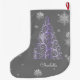 Add a festive touch to your fireplace mantle this holiday season with a Purple Christmas Tree and Snowflakes Stocking. Stocking design features a vibrant artistic Christmas tree with falling snowflakes and a dark gray background with a space you can add your name for personalization. Additional gift and holiday items available with this design as well.