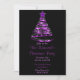 A purple christmas tree on a black background. The back of the invite is black with snow pattern