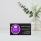 A business/profile card template with a white edged purple circular panel intended for Company details and logo. The logo used here is from Zodiac BT which is one of Zazzle's picture fonts. It can of course be changed, replaced or cleared and the text can be resized and/or realigned by pressing the customize button. The back of the card has been left blank using the same background color as the front which can be further customized if desired.