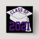 Give this Purple Class of 2024 Grad Cap Button to your favorite grad graduating this year. Personalize it with their class year. This button features a white grad cap on a black background with purple writing. It's perfect for graduates with school spirit.