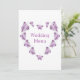 Wedding menu butterfly heart design. Customise this purple coloured menu with your wedding details. Should you require any help with customising then contact us through the link on this page. Purple coloured butterfly heart design personalised wedding menu