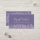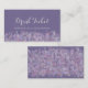 Chic wedding drink ticket with pale confetti over a purple background.