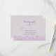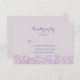 RSVP card for a wedding. Against a pale background, purple text and a band of pink, blue, and violet confetti.