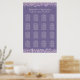 Wedding seating chart in purple with elegant fonts and confetti in pink and violet.