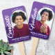 Stay cool while supporting your favorite grad as they receive their diploma, with this keepsake 2 photo hand fan. On the front, bold, graphic, white handwritten “congrats” script calligraphy, white and dark purple sans serif typography and a photo of your choice in an arch overlay a dusty purple and deep purple background. On the back, white handwritten “graduate” script calligraphy and sans serif typography, along with an additional custom photo, overlay light and dark purple. Personalize the custom text with your grad’s name, school and class year. Matching invites, thank you cards, address labels, stickers and other graduation goodies are also available in this trendy and stylish collection. Guaranteed to preserve cherished memories of their special occasion!