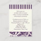 This purple, ivory, and pink striped damask reception enclosure card matches the wedding invitation shown below. You can also customize it to be a map or directions card, a wedding information card, or gift registry card by changing the text accordingly. If there are any other matching items you require, please email your request to niteowlstudio@gmail.com.