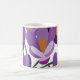 Purple Crocus Floral Coffee Mug designed by Nisha Prabhu. The Purple Crocus Floral Coffee Mug features a charming design adorned with delicate crocus flowers in shades of purple. Perfect for enjoying your favorite hot beverages, its floral pattern adds a touch of elegance and natural beauty to your daily routine. Whether as a gift or a personal treat, this coffee mug brings a splash of floral charm to your kitchen or office space.