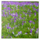A beautiful photograph of a carpet of purple crocuses printed on a ceramic tile.