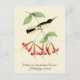 Post card with a vintage natural history illustration by Antoine-Germain Bevalet, c.) A green and white hummingbird with a blue-violet head perches on a coral pink trumpet vine, with a light golden yellow parchment texture background. Digitally cleaned and enhanced while still retaining its vintage characteristics. Features common and scientific names in decorative fonts. Matching U.S. postage stamps available.