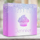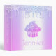 Purple cupcake glitter drips modern glam bold name 3 ring binder