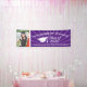 Purple and white school colors large wide yard banner, great for showing off your proud graduate, boy or girl grad, simple and classic themed indoor or outdoor banner sign! Instant preview and easy online ordering, shipped directly to you. Add your studen'ts photo, school, year and details. Radiant rays and beams of light in your high school or college colors with classic mortarboard graduation cap icon. Big giant jumbo wide horizontal yard sign or indoor/outdoor banner, Congratulations to the graduate of the class of (your year). Personalized outdoor or indoor graduation party or porch party sign banner with your graduate's year, name, high school. Amazing way to congratulate the graduate while social distancing at home or when it's time to welcome family and guests to your graduation party . Customize the background color more by clicking "customize further" and changing the background color.