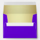 Elegant wedding invitation envelope, done in purple color, and a pale yellowish gold, on the inside of the envelope. Golden yellow text return address, on the back flap, is fully customizable and ready to personalize with your information. Lovely finishing touch to our Purple Satin and Peacock Wedding Invitations.