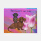 How beautiful this door mat is with spring time pastel purple and pink water colors, tulips and of course two adorable dachshund ready to welcome your guests and put a smile on their face.