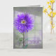 Bright purple dahlia on a watercolor textured background and window shadow for thinking of you.