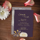 This Purple Daisy Antique wedding schedule enclosure card combines a modern boho, vintage style design with a traditional, royal type of design. The dark plum and dusty lavender, contrasting the minimal floral, gold wildflowers along with the yellow calligraphy, create a simple but classy touch to your spring or summer marriage celebration. Add more on the back for a timeline packed with even more events and information for your guests.