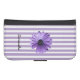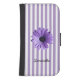 Pretty wallet style Samsung Galaxy S4 case, with graphics of a purple daisy like flower against a purple and white striped background. Personalize the black script text to suit your needs. Makes a great gift idea.