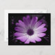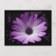 This pretty floral postcard features a beautifully detailed photograph of an African daisy flower. The photo has been digitally altered, resulting in a pretty purple coloured flower with different shades of purple on the petals and a dark purple centre.