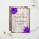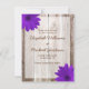 A country themed wedding save the date announcement. Featuring purple daisies on barn wood. Easily customize with your information.