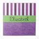 Purple Damask, Purple Stripes, Striped, Your Name Ceramic Tile