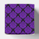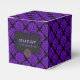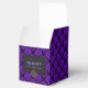 Purple Damask (Party Favor Boxes)-A dark purple and black pattern covers the entire background of the party favor box. On the front side is a decorative tag with a damask embellishment. I've placed two text areas for you to personalize with. I have written in the word GUEST and A little something just for you. Edit the text areas to say anything you like. If you do not want text, just DELETE it and remove the tag as well. That will leave just the damask background pattern. This design coordinates with other products in the store entitled: Purple Pearl Damask.