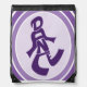Purple and white drawstring bag. Hand lettered design in the shape of a dancing figure. Perfect for carrying your shoes or a change of clothes to dance class.