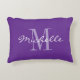 Purple decoration pillow with classy name monogram. Elegant accent pillow for living room, bedroom, office, nursery, kid's room and more. Stylish home decor. Trendy cushions for sofa, couch and bed in bedroom. Chic accessories for your interior. Colors can be changed.
