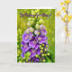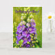 My original digital artwork featuring my original photograph of purple Delphinium flowers in a garden is on this pretty floral birthday card. Image was processed with a watercolor fantasy effect for an illustrated and whimsical appearance. The front of the card states "Birthday Greetings!" and the inside of the card states "Thinking of you on your special day and wishing you much happiness always! Happy Birthday!". A great card for any nature and flower lover.