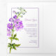 Purple delphinium flowers watercolor wedding Tri-Fold program