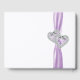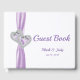 Elegant diamond hearts with a purple ribbon decorate this guestbook. Wedding guest books are fun for both the couple and their celebrants. Invite attendees to leave you well-wishes at your reception, and you're guaranteed to have a keepsake to look back on for years to come. Plus, your guests will get to leave their mark on your event, not to mention put in writing whatever they didn't have a chance to express in person on the big day. Personalize the book by changing the text in the fields provided. You can change font style, size, and color.