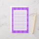Simple purple tone stationery with a background border pattern of purple checkered diamonds. Writing area in center is lined and semi-transparent with background pattern showing through.