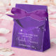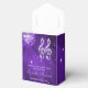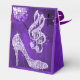 Personalized, elegant custom party favor box for womens 55th birthday with glitz and glamour. Beautiful purple, lilac / lavender and white party favor boxes for women with a funky retro disco mirror ball, glamorous printed image rhinestone glitter, sequins, jewels sparkle high heel stiletto shoes, and glittery musical notes / music notes with sparkles on a vibrant purple lights and sparkles background. Chic, classy, cute, girly, modern party favor boxes for 55th birthday in trendy, fashionable colors. These are groovy, stylish, sophisticated, pretty favor boxes . If you need any assistance customizing your product please contact me through my store and I will be happy to help.