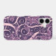 This is an interesting and attractive abstract case design, with two toned purple flower images resting on a background of light violet pink swirls and stars, and a darker purple blue polka dotted background. Definitely not your average case!