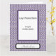 Purple polka dots frame to surround newborn photo. Birth announcement details inside.
