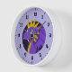 Clock with illustration of cute purple and yellow dragon girl / fairy-tale design for kids in black circle , design for kids by Maxi Harmony,
