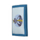 Wallet with illustration of head of a cute little purple dragon in yellow circle, cute fantasy / fairy-tale design for kids by Maxi Harmony,purple