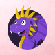 Wall Decal with illustration of cute purple and yellow dragon girl / fairy-tale design for kids in black circle , design for kids by Maxi Harmony,