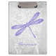 Jot down notes and reminders on a secure surface with a Purple Dragonfly Personalized Clipboard. Clipboard design features a colorful dragonfly, a soft white leafy vine against a light gray grunge damask background with an area to personalize with your name. Additional gift items available with this design as well as a variety of colors.